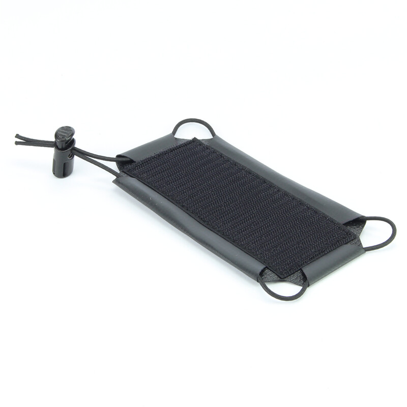 Mithilfe des Gummibandes und des Kordellstoppers lässt sich diese Halterung an verschiedene Geräteabmessungen anpassen.