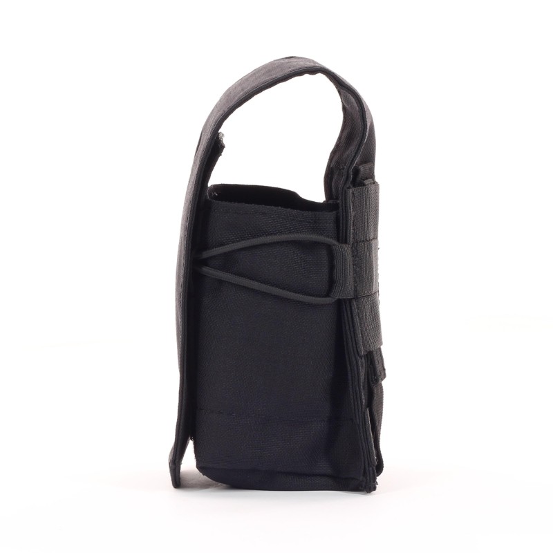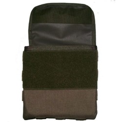 Die Tasche bietet Platz für bis zu zwei G36 Magazine oder drei M4/M16 Magazine. Die Magazine werden durch einen Deckel/Flap gesichert, der mit einer Klettfläche auf der Vorderseite verschlossen wird. Eine zusätzliche Sicherung erfolgt durch eine Gummikordel in der Mitte der Tasche, die den Anpressdruck erhöht und die Magazine sicher an ihrem Platz hält.