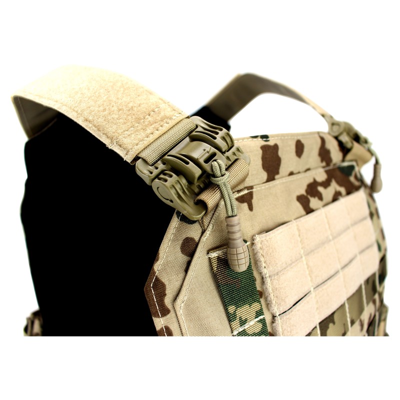 The quick release system with ZenTubes is based on ROC buckles, which are simple and intuitive to use. This new locking system automatically equips the Vulcan III plate carrier as a quick release system. The ZenTubes are equipped with a rubberized cord for better grip. The mechanism is triggered by pulling the cord away from the body and upwards.