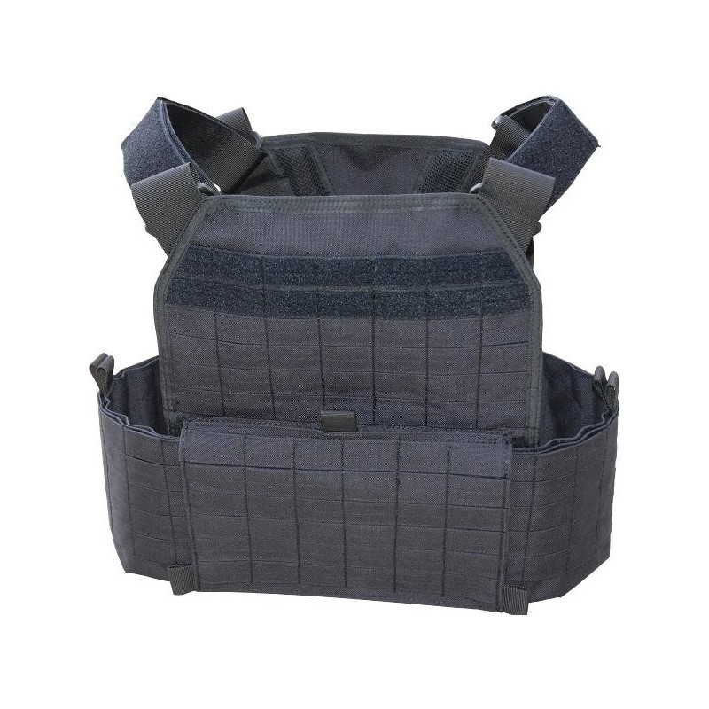 On the inside is the opening to the plate pocket, as well as two ergonomically shaped pads that significantly increase carrying comfort and ventilation. Pockets can also be clipped into the cummerbunds or ballistic packs and plates can be stored.