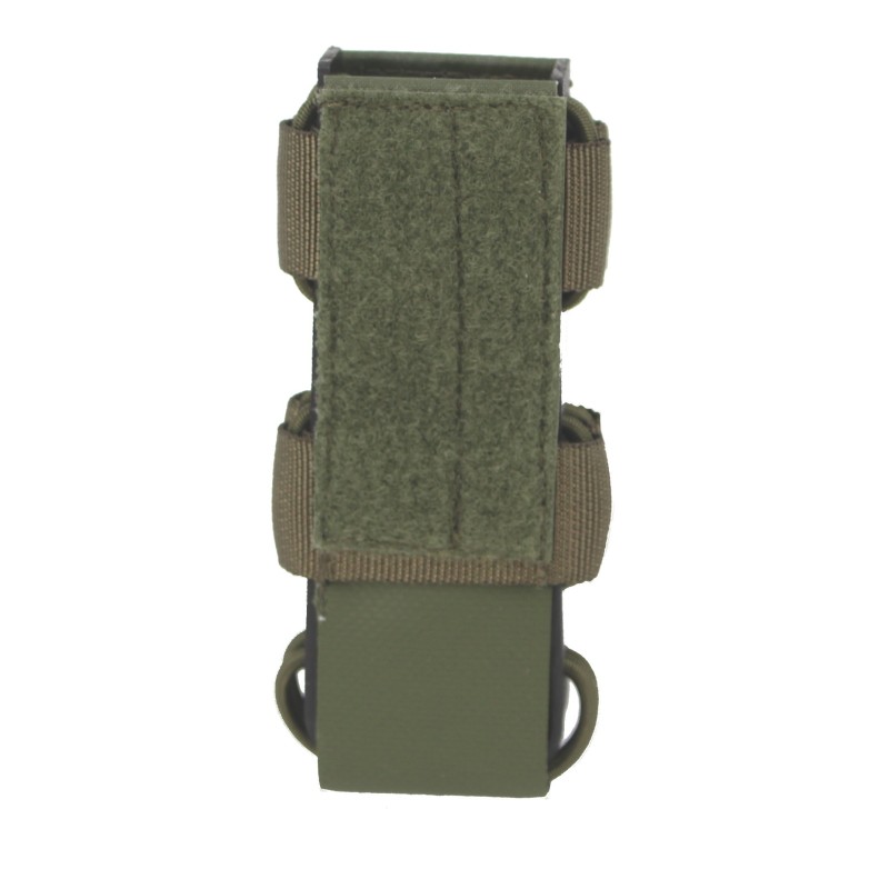 The hybrid solution for all common machine pistol magazines double row as MP5 and MP7. A secure grip of the magazine plus quick drawing and return speed are achieved by the Rubbercords Kydex® profile. The Velcro Quick Draw Pouch can be attached in the front pocket of the plate carrier Vulcan or in the Kangaroo Flap of the Vulcan II system. For this is on one side hooks and the other fleece Velcro sewn on, which makes them also usable for many other systems. Furthermore, the Velcro Quick Draw Pouch can also be placed in the ballistic Kummerbund. The user does not have to relinquish the advantages of the ZentauroN quick draw pouches, but does not need any further Molle-loops. In addition, a very flat profile is achieved.