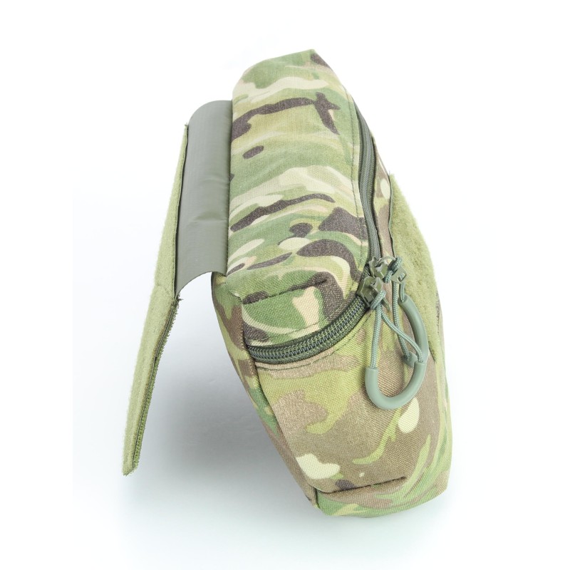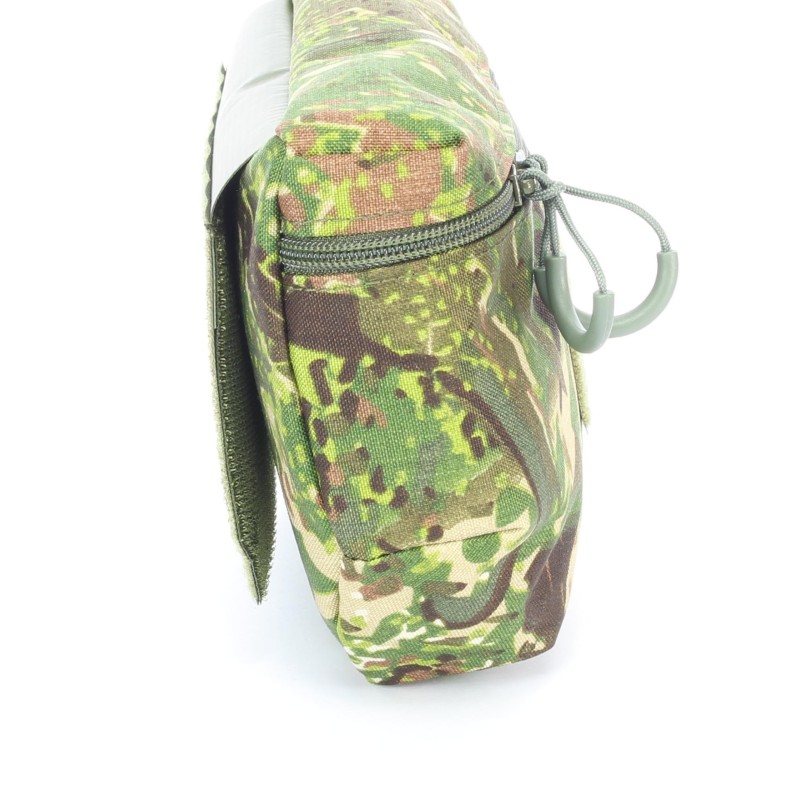 También puede utilizarse para el equipo personal de primeros auxilios. Puede incluir vendas, tiritas, tijeras de rescate o incluso un torniquete. Se fija a las superficies de velcro del portaplacas. Para ello, en la parte posterior se fija un panel con una superficie de vellón y velcro, que se engancha entre la solapa y la faja.