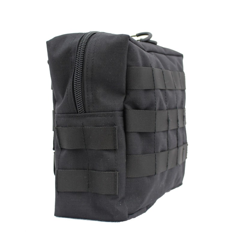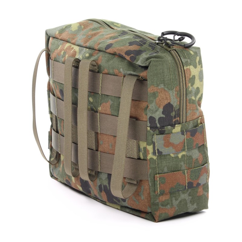 La bolsa con cremallera XL se puede acoplar a todos los sistemas MOLLE /PAL con las varillas fijas de la parte posterior. Puede utilizarse como bolsa adicional en portaplacas, chalecos antibalas y mochilas.