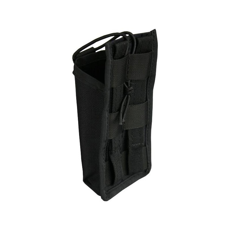 Esta bolsa MOLLE para radios portátiles tiene un diseño abierto. El dispositivo simplemente se inserta en este diseño abierto y puede llevarse sobre el equipo. La bolsa para radios tiene capacidad para radios portátiles CB, BOS y VHF más grandes, con una altura máxima de 20 centímetros y una anchura de hasta 8 cm.