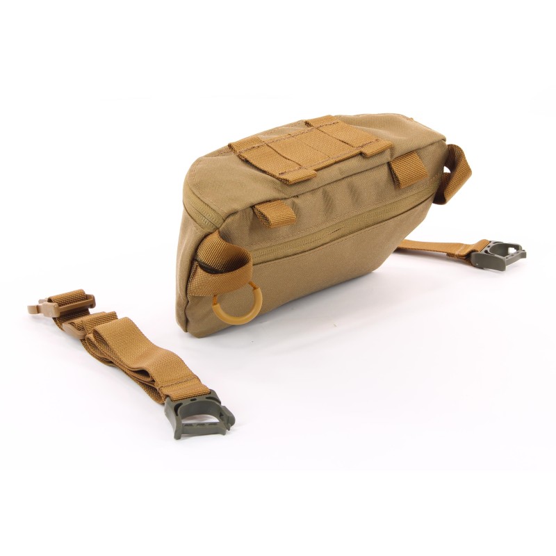 Hay cuatro accesorios MOLLE en la tapa. Hay bucles en los dos soportes exteriores MOLLE. Los accesorios opcionales, como un torniquete, pueden fijarse a estos lazos mediante un cordón de goma. Este tipo de fijación permite un acceso rápido a los accesorios.