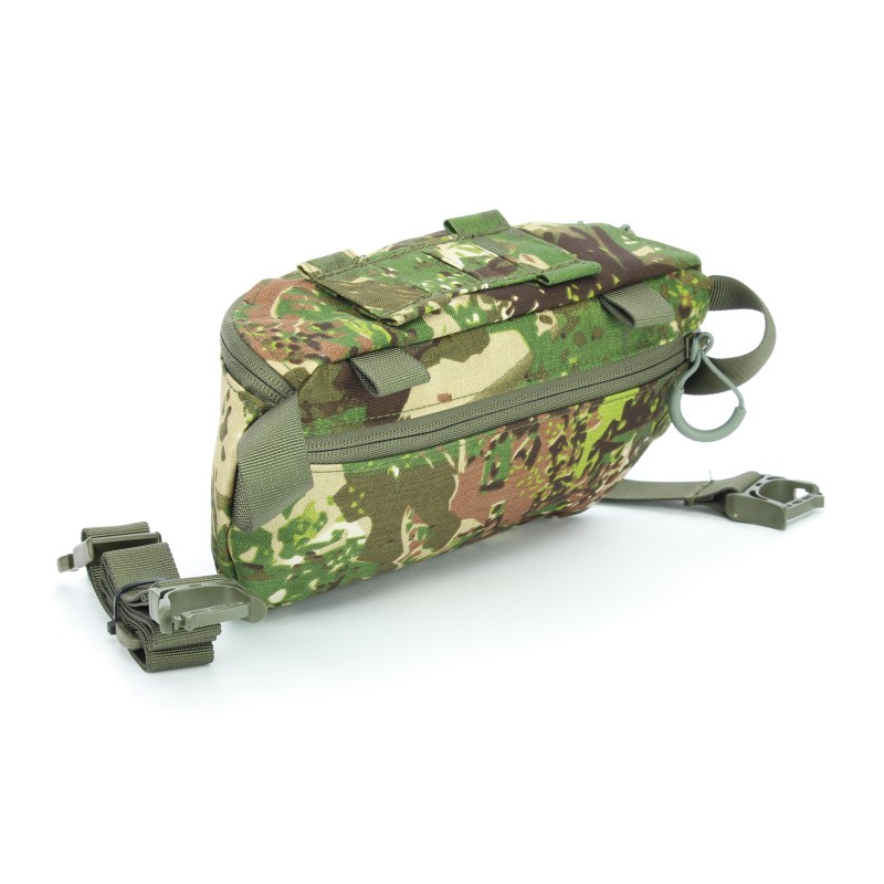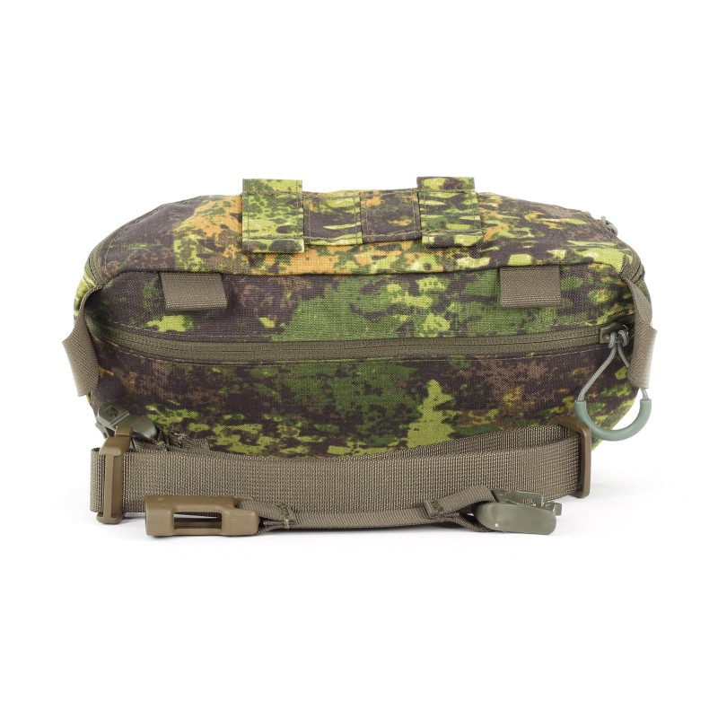 Questo marsupio modulare ha un volume di circa 1,8L ed è quindi più grande del marsupio tattico. Questo permette di trasportare più materiale. È fatto di materiali di grado militare ed è ugualmente adatto all'uso di servizio. La lavorazione e i colori di mimetizzazione sono conformi alle disposizioni specifiche delle singole forze armate, anche nella gamma NIR (per esempio Bundeswehr). La borsa misura 24,5 cm x 17 cm x 8 cm (L/H/D) e pesa circa 162 grammi.