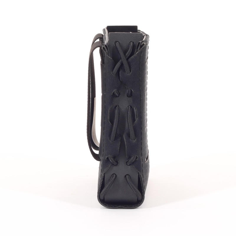 All'interno, il marsupio ad estrazione rapida è dotato di un telo che tiene anche il caricatore ben saldo nel marsupio. Le due cinghie Faststick / MOLLE sul retro dell'astuccio per caricatore forniscono un collegamento sicuro al trasportatore.